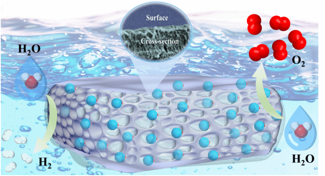近日,我院薛立新研究员与浙江工业大学黄菲教授合作团队在国际知名的期刊 Small上发表题为“Highly Efficient and Durable Water Electrolysis at High KOH Concentration Enabled by Cationic Group-Free Ion Solvating Membranes in Free-standing Gel Form”的研究论文。该工作提出了一类新型的独立式凝胶形式的无阳离子基团的离子溶剂化膜 (ISM-PBI-FG) 用于高效和耐用的碱性水电解。该膜以凝胶形态存在,通过溶胶-凝胶转变过程后经KOH吸收制备而成。与传统的 AEM 和PBI基 ISM 相比,ISM-PBI-FG 膜具有多孔的内部结构和致密的外表面,为碱性电解质的吸收提供了更大的体积,并为离子传输创造了纳米级通道。ISM-PBI-FG膜是由纠缠的聚苯并咪唑(PBI)纳米纤维组成的3D多孔微观结构,实现了89%的孔隙率,使其能够吸收极高的碱液(在6 M KOH中为346%)并展现出卓越的离子传导性(在80°C时为763 mS cm⁻¹)。这一概念的可行性通过 AWE 测试得到了验证,其中使用 NiFe/Raney Ni(不含 PGM)和 NiFe/Pt/C (PGM) 催化剂组合,在 2.0V 下电流密度分别达 2.2 A cm-² 和 5.5 A cm-²,实现了优异的水电解性能。本研究工作得到国家自然科学基金委基金项目(22209147)和中国工程院院士咨询项目(2022-DZ-08)的资助完成。