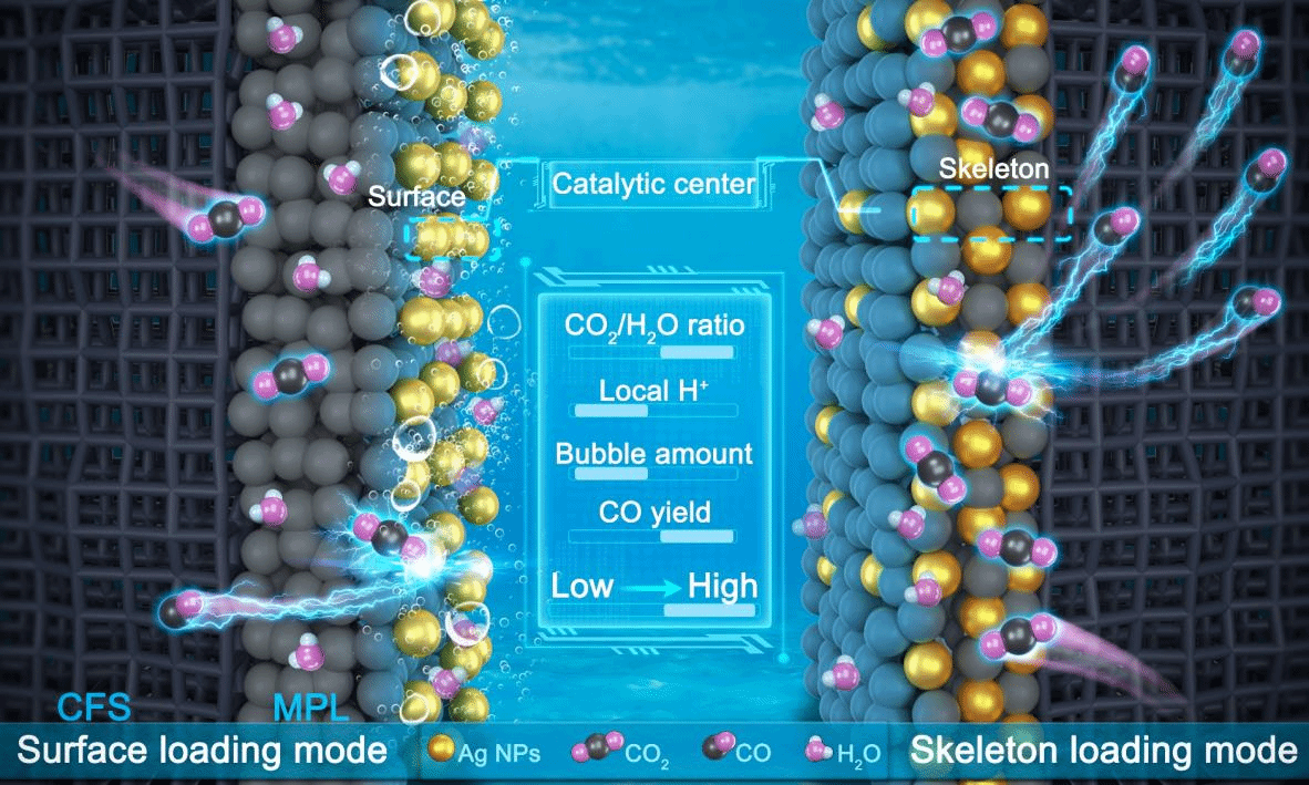 在酸性环境下,由于氢气析出反应(HER)的主导作用,银基催化剂的电还原CO2反应(eCO2RR)催化活性通常表现不佳。此外,传统的表面负载方式容易导致催化剂从气体扩散层(GDL)上脱落,影响反应的效率和稳定性。先前的研究表明,通过功能分子或聚合物粘合剂对银基催化剂表面进行修饰,可以提高CO2/H2O比例,抑制HER并促进eCO2RR。然而,这些添加剂可能会降低导电性并阻碍活性位点的物质传输。因此,开发一种能够将Ag NPs定向输送到有利于eCO2RR的微环境中,对于实际应用至关重要。