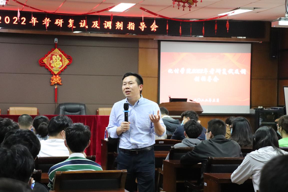 温州大学化学与材料工程学院在2022年3月15日星期二下午15:00举办2018级考研复试及调剂指导会,活动通过线下和线上相结合的模式,为在校及未返校同学提供考研复试指导。学院金辉乐副院长、陈锡安副院长,各系主任、2018级班主任、学院相关老师出席会议。会议由学院党委副书记周敬业老师主持。