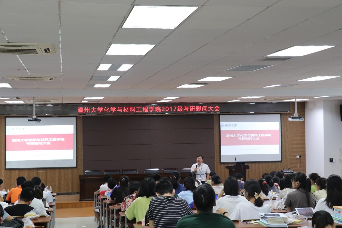 为鼓舞考研学子信心,缓解学生考前压力。2020年7月27日,温州大学化材学院院长王舜、党委书记熊琳、副院长金辉乐、副院长夏远志、党委副书记周敬业、院长助理陈锡安以及学工办辅导员孙玮玮、邹涌彬、李国朋一行前往11C-401考研自习室看望我院备战考研的学子,为他们送上关怀与祝福。