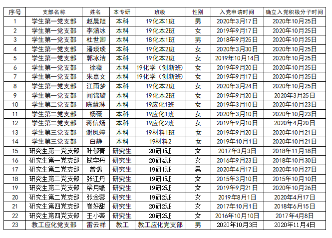 化材学院2021-2022-1学期拟确定赵晨旭等23名同志为发展对象的公示