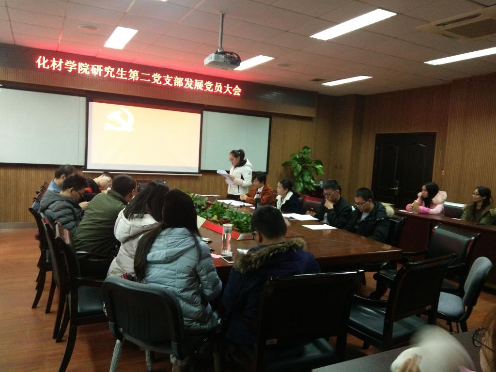 12月13日下午,温州大学化学与材料工程学院研究生第二党支部在化材楼11B-204室召开发展党员大会。大会主要讨论王宇、蒋举涛、薛欣欣、张业彤、张晓霞等5位发展对象入党问题。学院党委委员易招娣同志、研究生第二党支部全体党员以及5位发展对象参加了大会,4名重点培养对象列席会议。大会由学院研究生党建指导老师邹涌彬同志主持。