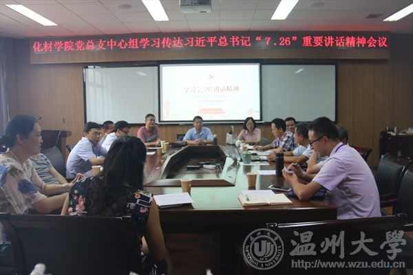 9月4日上午,我院召开党总支中心组学习会议,深入学习、研讨、交流了习近平总书记“7.26”的重要讲话精神,会议由学院党总支书记方乐平主持,化材学院相关党员同志参加了会议。