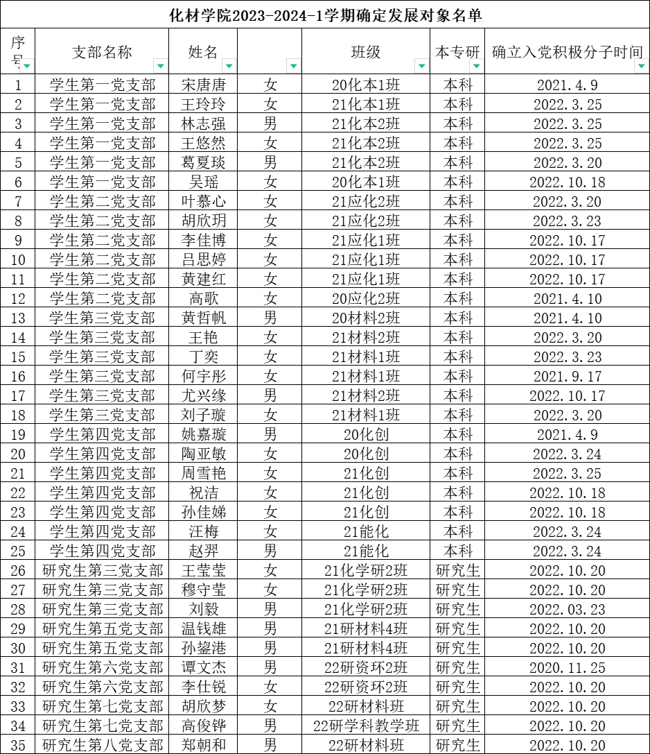 化材学院2023-2024-1学期拟确定宋唐唐等35名同志为发展对象的公示