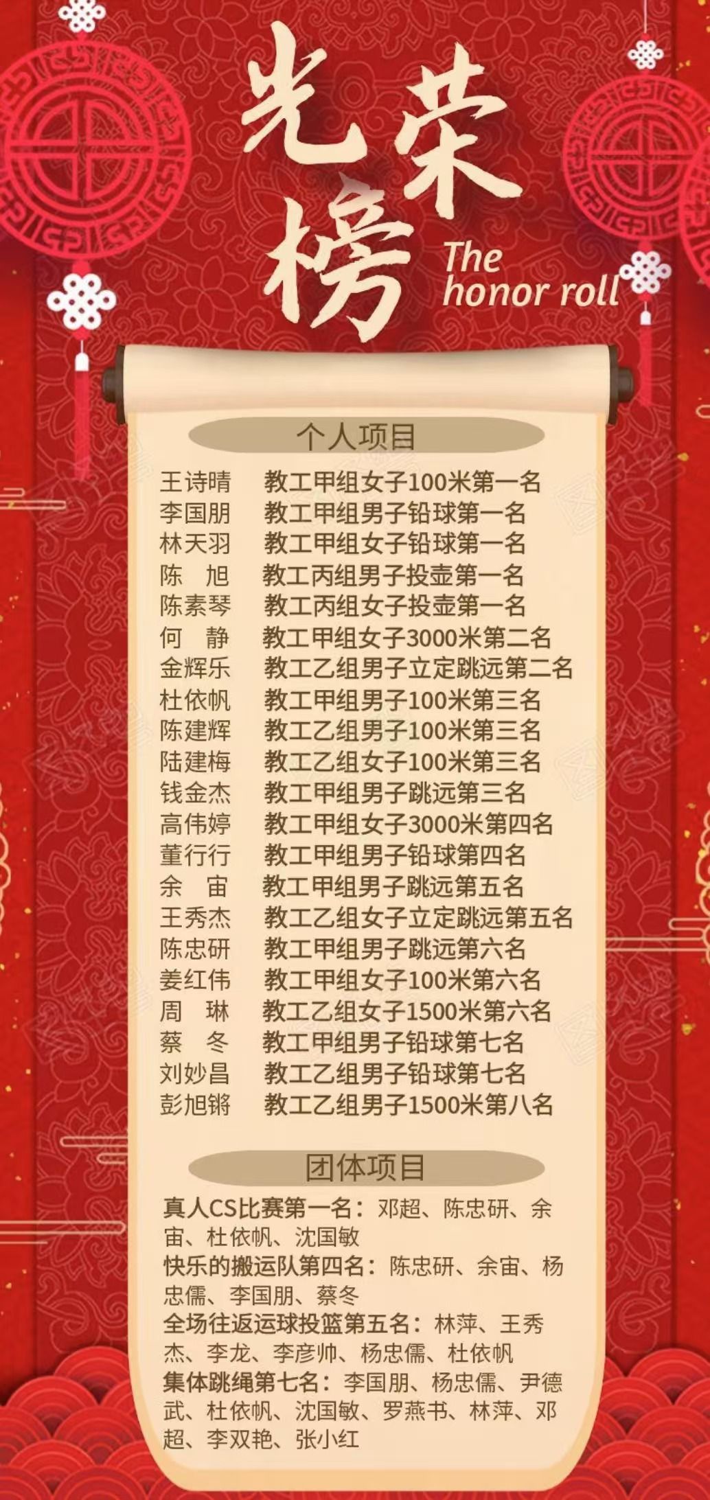 化材学院分工会一直秉持着“赓续传承、追求卓越”的院训,“奋勇拼搏、超越自我是化材学院的精神,也是化材学院的宝贵财富!本次运动会促进了我院教职工参与运动的热情,提升了爱院荣院的自豪感和荣誉感,展现了化材学院昂扬团结的精神风貌,激励所有化材人在今后的工作学习中更加踔厉奋发,勇毅前行!