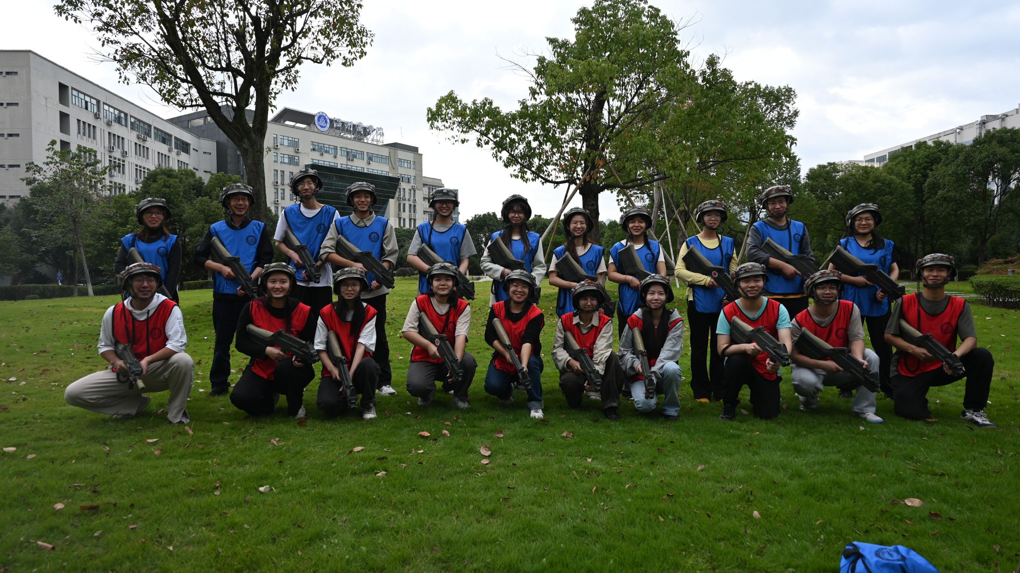 下午15点,本次趣味运动会的重头戏“真人CS”正式开始,活动共分三个环节进行。在第一个环节中,全体人员分为“红蓝”两个小队,分别确定了队名、口号和队长。在专业人员的指导安排下进行一系列的热身运动。第二环节,带队教师对“真人CS”规则进行讲解。第三环节,各小队在指定时间内采取迂回、包抄、吸引、包围、冲锋、狙击、偷袭等各种方式,进行“厮杀”。随着演习战、烟雾战、间谍战的开始,口号声、欢笑声此起彼伏,热闹非凡,活动一直持续三个小时。
