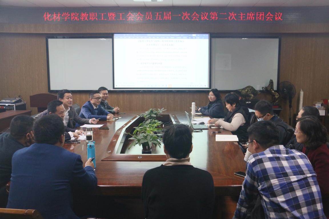 2021年2月28日下午1:30,化学与材料工程学院在11B204会议室召开化学与材料工程学院教职工暨工会会员五届一次会议第二次主席团会议。化学与材料工程学院院长王舜、党委书记熊琳、副院长杨植等学院领导,学院教职工工会主席团出席本次会议。会议由党委书记熊琳主持。