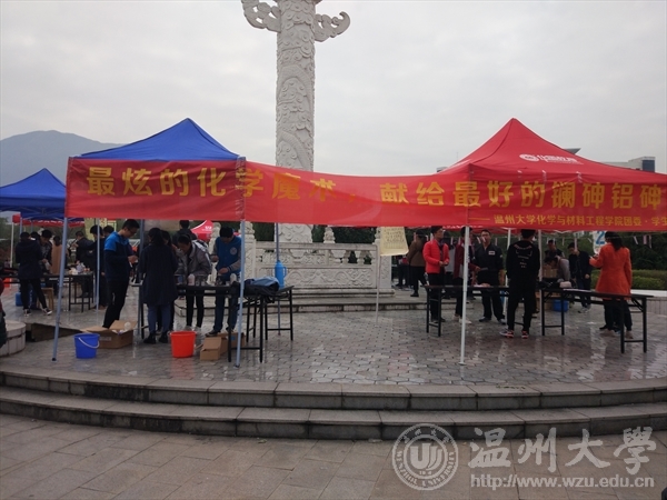2016年12月3日上午9:00,化学与材料工程学院团委·学生会科研竞赛指导中心在A区华表举行了主题为“Enjoying Chemistry 化学游园会”的活动。此次活动面向温大全体学生,采用闯关领奖的方式进行。游园会现场人气爆棚,热闹非凡!