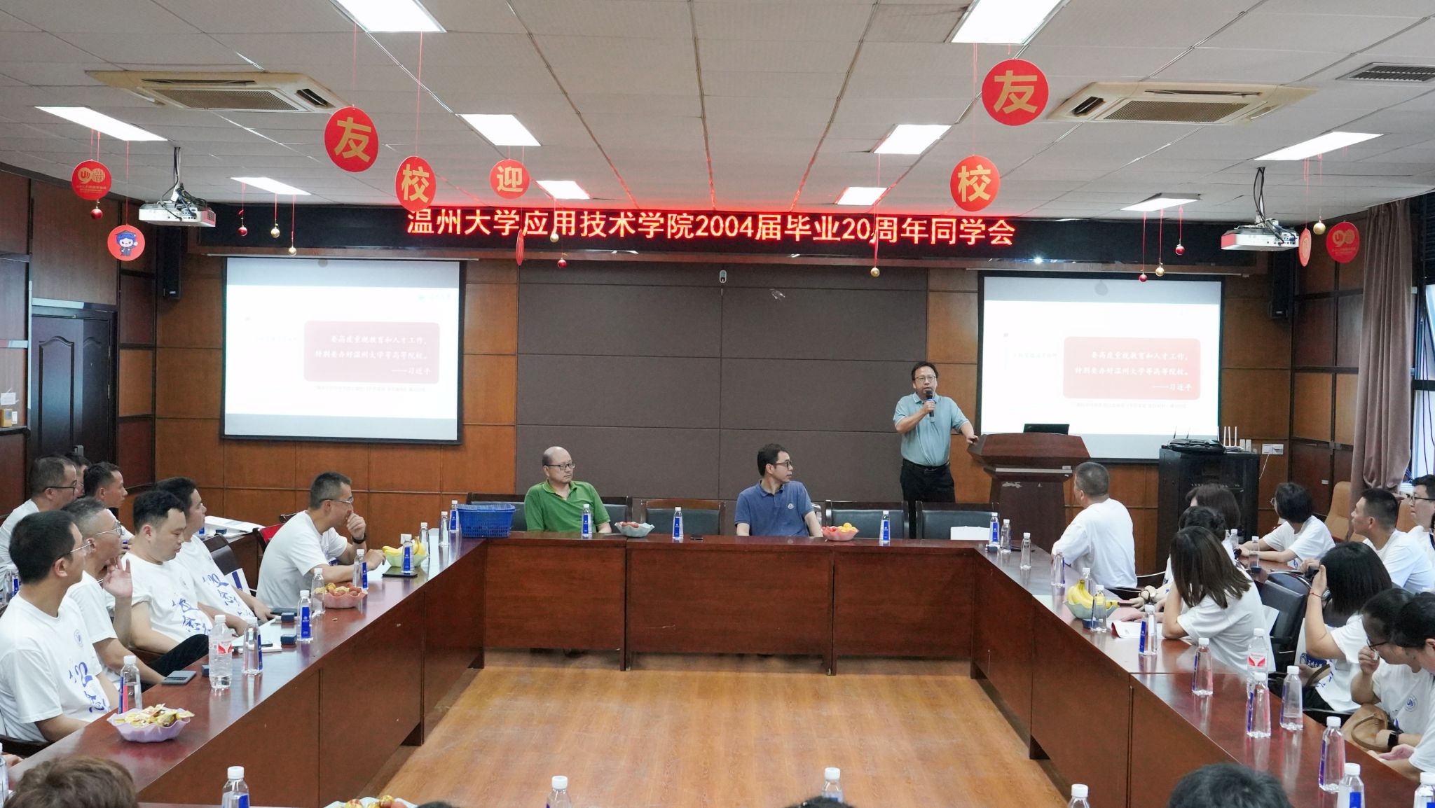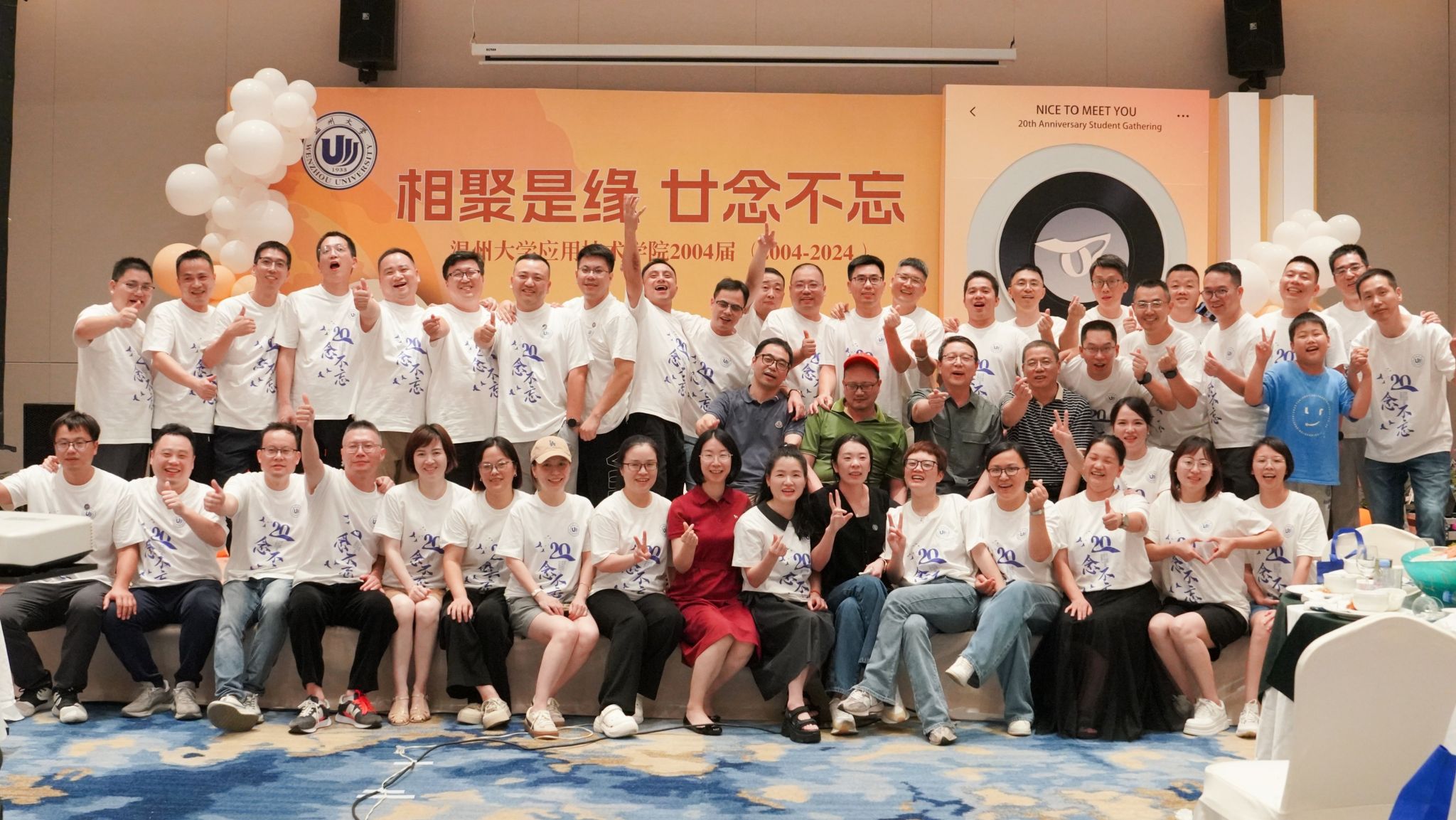 忆同窗尽显往昔风流,聚此间共乐日月同辉。2024年7月6日,温州大学2004届精细化工工艺专业校友、环境治理工程专业校友毕业二十周年同学会在母校顺利举行。来自五湖四海的校友们欢聚一堂,共同追忆青春岁月,共叙同学情谊。